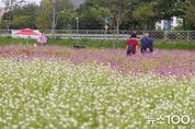 뉴스100 김동초 기자 | 가을은 꽃의 마지막 무대다. 뜨거운 여름의 열기를 뒤로하고, 서늘한 바람 속에서 꽃들은 오히려 더 짙고 선명하게 빛난다. 초록에서 붉게 물들어가는 댑싸리, 하얀 소금을 뿌려놓은 듯한 메밀꽃, 알록달록 백일홍, 솜뭉치 같은 목수국, 그리고 들판을 황금빛으로 물들이는 황화 코스모스까지 모두가 한 폭의 그림처럼 펼쳐진다. 넓은 들판에 가득 피어난 가을꽃 사이를 걷다 보면 꽃잎 하나하나가 마음을 스친다. 은은한 향기는 오래도록 기억에 남고, 끝없이 이어지는 꽃물결은 마치 계절이 들려주는 따뜻한 이야기 같다. 끝없이 펼쳐진 꽃 물결. 나와 꽃이 하나가 되는 경기도의 가을꽃 여행지로 떠나보자. 국내 최대 규모 천일홍 군락지 ‘양주 나리농원’ 가을의 문턱에 들어서면 양주 나리농원은 한 폭의 수채화가 된다. 끝없이 펼쳐진 분홍빛, 보랏빛 물결이 마음까지 물들인다. 이 풍경의 주인공은 바로 천일홍이다. 사탕처럼 동글동글한 꽃송이들은 바람에 흔들리면서도 흐트러지지 않고 색 또한 쉽게 바래지 않는다. 그래서 천일홍은 ‘천일 동안 붉음을 간직한다’는 뜻의 이름을 얻었다. 축구장 9개 크기만 한