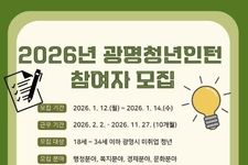 뉴스100 김동초 기자 | 광명시가 오는 12일부터 14일까지 ‘2026년 상반기 청년 일자리 사업’ 참여자 103명을 모집한다. 청년 일자리 사업은 공공 및 유관기관에서 실무 경험 기회를 제공해 청년의 사회진출과 진로 탐색을 지원한다. 이번 사업은 ▲광명청년인턴 ▲청년성장 등 2개 유형으로 운영하며, 총 103명의 청년을 선발할 예정이다. 유형별 모집 인원은 광명청년인턴 55명, 청년성장 48명이다. 광명청년인턴은 공고일(2026.1.1.) 기준 광명시에 주민등록이 되어 있는 18세 이상 34세 이하(1991.1.2.~2008.1.1. 출생자)의 미취업 청년이, 청년성장은 18세 이상 39세 이하(1986.1.2.~2008.1.1. 출생자)의 미취업 청년이 신청할 수 있다. 참여를 원하는 청년은 잡아바 어플라이에서 온라인 신청하면 된다. 최종 선발 결과는 오는 1월 27일에 발표할 예정이다. 근무 기간은 광명청년인턴의 경우 2월 2일부터 11월 27일까지 약 10개월간, 청년성장은 2월 2일부터 6월 26일까지 약 5개월간이다. 근무 조건은 주 5일, 하루 7시간 근무이며 월 급여는