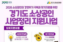 뉴스100 김동초 기자 | 경기도시장상권진흥원은 도내 경영 위기로 폐업했거나 폐업을 앞둔 소상공인들의 안정적인 재기를 돕기 위해 ‘2026년 경기도 소상공인 사업정리 지원사업’을 추진한다고 밝혔다. 이번 사업은 장기화된 경기 침체와 경영 불확실성으로 어려움을 겪는 소상공인들에게 실질적인 생활 자금을 지원하고, 전문가의 컨설팅을 통해 성공적인 경제활동 복귀 기반을 마련해 주기 위해 기획됐다. 지원 대상은 2025년 1월 1일 이후 폐업했거나 폐업 예정인 도내 소상공인으로, 총 320개사를 선정해 ▲분야별(창업, 경영, 직업, 심리, 금융) 전문 1:1 컨설팅과 ▲폐업 및 재기에 필요한 재기장려금(1개사 200만원)을 지원한다. 경상원은 신청자의 편의를 높이기 위해 ‘경기바로’ 시스템을 통한 온라인 접수를 진행하며, 공공 마이데이터 연계를 활용해 최초 신청 시 제출해야 하는 서류를 대폭 간소화했다. 또한 신속한 경제 복귀를 위해 상반기 집중 모집과 조기 집행에 총력을 기울일 계획이다. 아울러 지역 균형 발전을 고려해 인구감소지역 등 정책적 배려가 필요한 지역까지 재도약의 기회가 고르게 전달 될 수 있