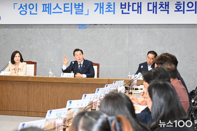 29일 시청 상황실에서 열린 ‘성인페스티벌 개최 반대 대책회의’를 주재한 이재준 시장은 “오늘(3월 29일) 성인페스티벌 개최 예정 장소인 수원메쎄에 행사 취소를 요청하는 공문을 보낼 것”이라며 “주최 측이 행사를 취소하지 않고, 강행한다면 행정대집행으로 행사 개최를 저지하겠다”고 천명했다.