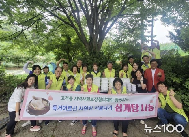 뉴스100 김동초 기자 | 의왕시 고천동 지역사회보장협의체가 지난 12일 초복을 맞아 취약계층 30여 가구를 대상으로 ‘시원한 여름나기 삼계탕 나눔 행사’를 진행했다.