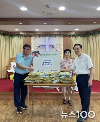 뉴스100 김동초 기자 | 의정부시 신곡1동주민센터는 7월 25일 신곡순복음교회가 어려운 이웃에게 전달해 달라며 쌀 400kg 및 성금 100만 원을 기부했다고 밝혔다.