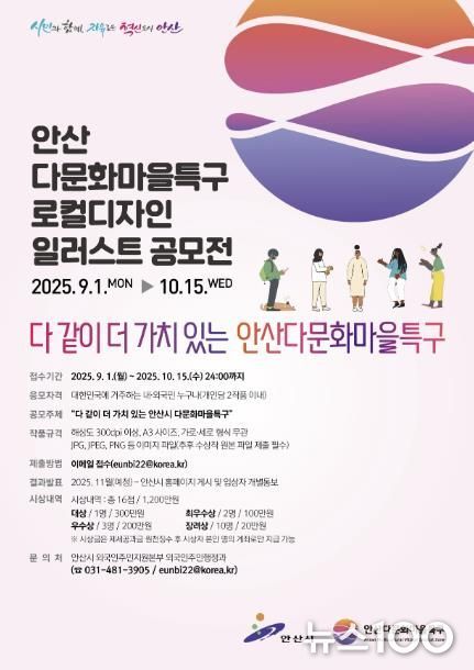 뉴스100 김동초 기자 | 안산시는 오는 10월 15일까지 ‘다문화마을특구 로컬디자인 일러스트 공모전’을 진행한다고 1일 밝혔다.