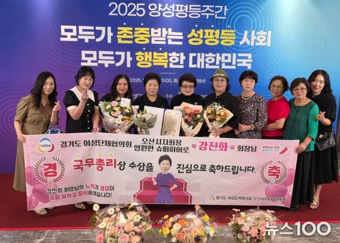 뉴스100 김동초 기자 | 오산시는 지난 9월 4일 서울 용산 피스앤파크 컨벤션에서 열린 '2025년 양성평등주간 기념식'에서 사)경기도여성단체협의회 오산시지회 강진화 회장이 양성평등진흥 유공으로 국무총리 표창을 수상했다고 밝혔다.