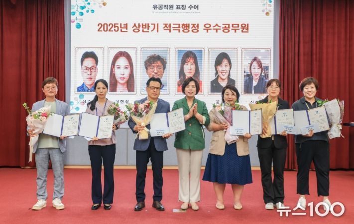 뉴스100 김동초 기자 | 과천시는 적극행정 분위기 확산을 위해 ‘2025년 상반기 적극행정 우수공무원’으로 선정된 12명의 공무원에게 표창장을 수여했다고 9일 밝혔다. 시상식은 지난 지난 4일 시청 대강당에서 열린 ‘직원 소통의 날’ 행사에서 진행됐다.