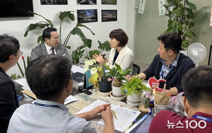 뉴스100 김동초 기자 | 경기도의회 농정해양위원회 이오수 의원(국민의힘, 수원9)은 8일 경기도의회 의원실에서 경기주택도시공사(GH) 및 경기도청 택지개발과 관계자들과 간담회를 갖고, 광교신도시 개발이익금의 합리적이고 투명한 활용 방안을 논의했다.