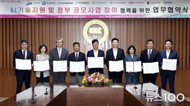 안산시는 지난 24일 한양대학교ERICA 프라임 컨퍼런스홀에서 ‘AI기술지원 및 정부 공모사업 참여 협력을 위한 업무협약식’을 개최했다고 25일 밝혔다.