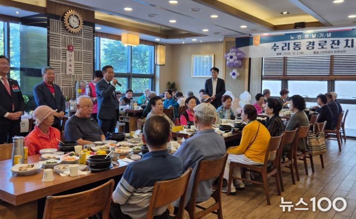 뉴스100 김동초 기자 | 군포시 수리동 주민자치회(회장 고진해)는 제29회 노인의 날을 맞아 지난 10월 2일 수리동 어르신들을 대상으로 경로잔치를 개최했다. 이번 행사는 하은호 군포시장, 이학영 국회부의장 등 여러 내빈과 수리동 직능단체장들이 어르신 100여 명과 뜻깊은 자리를 함께했다.