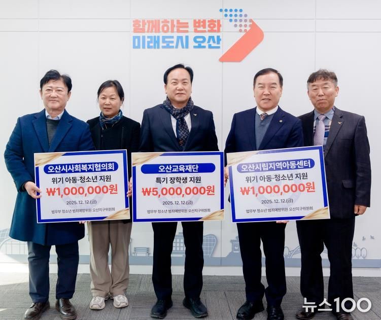 뉴스100 김동초 기자 | 오산시는 지난 12일 법무부 청소년 범죄예방위원 오산지구위원회로부터 지역 인재 육성과 위기 아동·청소년 지원을 위한 장학금 및 후원금 총 700만 원을 기탁받았다고 밝혔다.