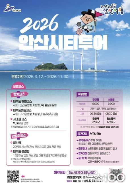 시티투어는 사전 예약제로 운영되며 대한여행사를 통해 예약할 수 있다. 자세한 코스 정보는 안산시 관광 누리집에서 확인할 수 있다.