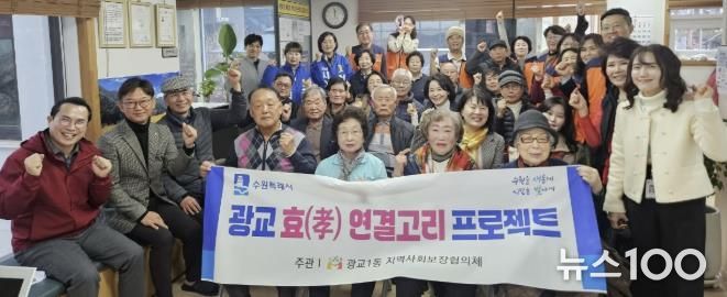 송숙영 광교1동장은 “효(孝) 연결고리 프로젝트는 지역사회가 함께 어르신을 돌보는 의미 있는 실천”이라며 “앞으로도 민·관 협력을 통해 어르신들이 건강하고 활기찬 노후를 보내실 수 있도록 다양한 복지사업을 지속적으로 추진하겠다”고 말했다.