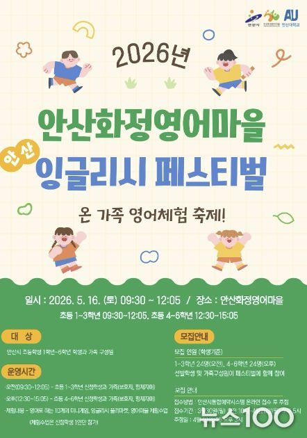 뉴스100 김동초 기자 | 안산시가 설립하고 안산대학교가 운영하는 안산화정영어마을은 ‘온 가족 영어체험 축제!’를 주제로 ‘안산 잉글리시 페스티벌’을 운영한다고 24일 밝혔다.