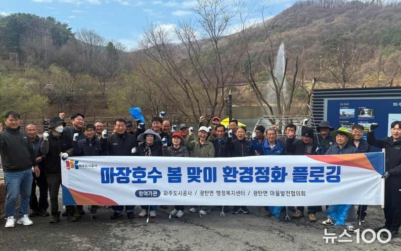 뉴스100 김동초 기자 | 파주도시공사는 지난 31일 파주시 광탄면 행정복지센터 및 마을발전협의회와 함께 마장호수 봄맞이 환경정화 플로깅에 나섰다.