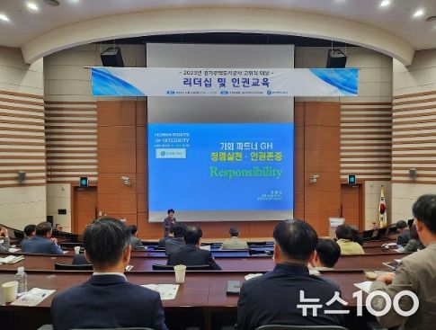 뉴스100 김동초 기자 | 경기주택도시공사(GH)가 24일 경기도 수원시 차세대융합기술연구원에서 처장급 이상(사장 및 임원 포함) 고위직을 대상으로 ‘2023년 고위직 맞춤형 통합폭력예방교육’을 실시했다고 밝혔다.