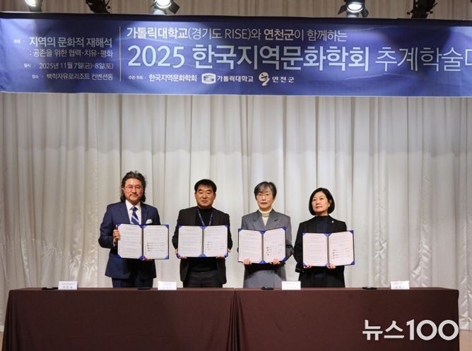 뉴스100 기자 | 경기문화재단 전곡선사박물관은 지난 7일 백학자유로리조트 컨벤션센터에서 연천군, 가톨릭대학교, 한국지역문화학회와 경기도 RISE 사업과 연계한 ’경기북부 지역혁신 네트워크 구축‘ 업무협약(MOU)을 체결했다.
