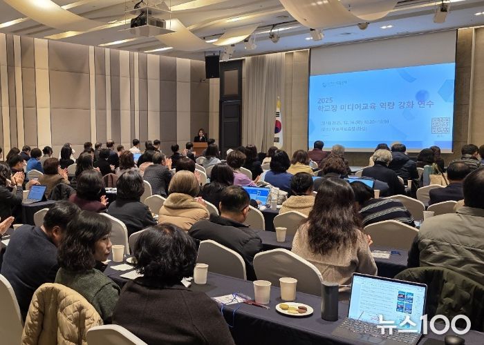뉴스100 김동초 기자 | 경기도교육청미디어교육센터가 16일 도내 초·중·고등학교 교장 100여 명을 대상으로 ‘2025 학교장 미디어교육 역량 강화 연수’를 운영했다.