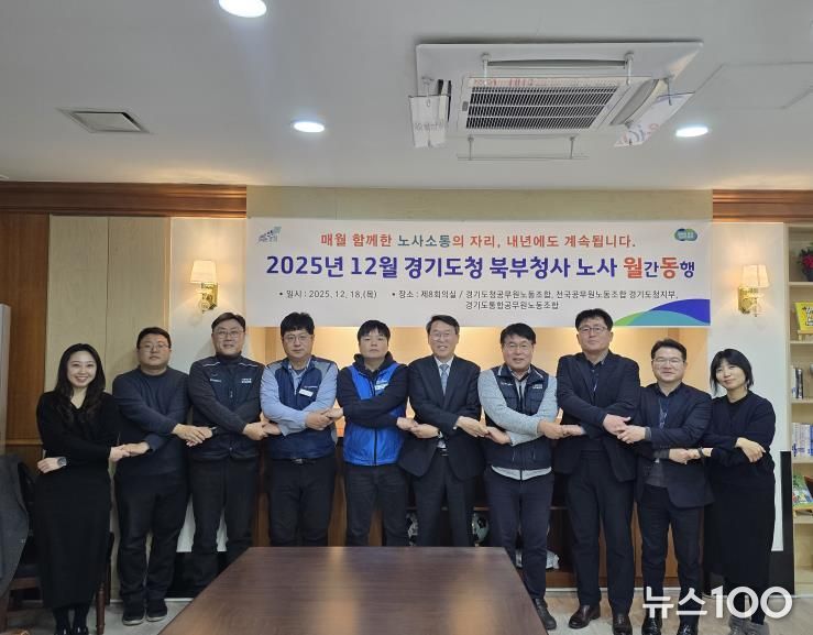 뉴스100 김동초 기자 | 경기도 북부청과 경기도청 3개 노동조합(경기도청공무원노동조합, 전국공무원노동조합 경기도청지부, 경기도통합공무원노동조합)은 ‘노사월동(노사 월간동행)’을 매월 정기적으로 운영해 오며 실질적인 조직문화 개선과 노사 간 신뢰 회복 기틀을 마련했다고 22일 밝혔다.
