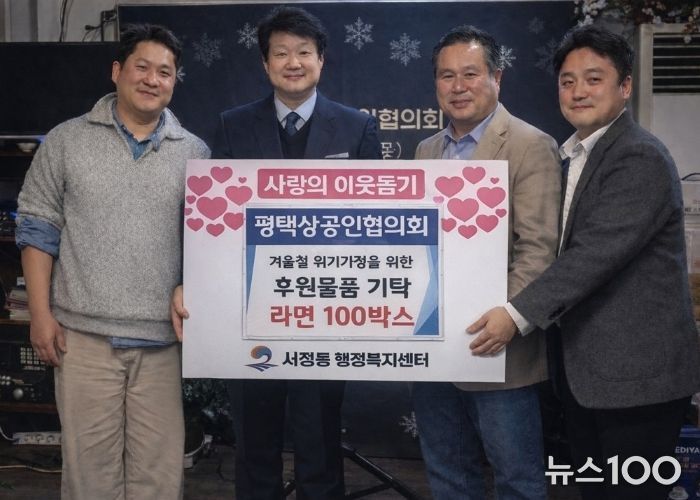 뉴스100 김동초 기자 | 평택시 서정동 행정복지센터는 지난 18일 평택상공인협의회가 겨울철 복지 사각지대에 놓인 취약계층을 돕기 위한 라면 100박스를 기부했다고 밝혔다.