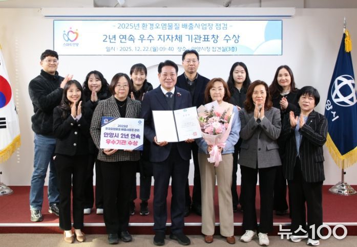 뉴스100 김동초 기자 | 안양시는 경기도가 주관하는 ‘2025년 환경오염물질 배출사업장 관리평가’에서 지난해에 이어 2년 연속 우수기관에 선정되고, 경기도지사 표창을 받았다고 22일 밝혔다.