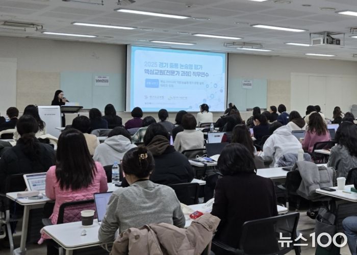 뉴스100 김동초 기자 | 경기도교육연구원 경기평가관리센터가 2025년 12월 3일부터 12월 20일까지 온·오프라인 혼합형으로 운영한 ‘2025 경기 중등 논술형 평가 핵심교원(전문가 과정) 직무연수’를 총 20시간 과정으로 마무리했다. 연수에는 중등 교사 77명이 참여했으며, 실습 중심 프로그램으로 구성돼 참가자들의 만족도가 높게 나타났다.