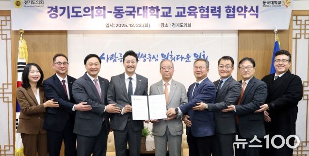뉴스100 김동초 기자 | 경기도의회는 23일 오전 의장 접견실에서 동국대학교와 교육협력 및 학술교류를 위한 업무협약(MOU)을 체결했다.