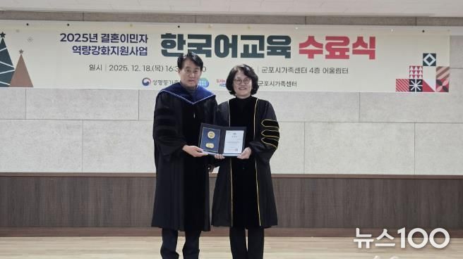 뉴스100 김동초 기자 | 군포시 가족센터는 지난 12월 18일 가족센터 어울림터에서 결혼이민자와 중도입국자녀 60명을 대상으로 한국어교육 수료식을 개최했다.