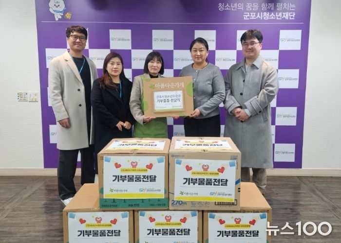 뉴스100 김동초 기자 | (재)군포시청소년재단 군포시청소년수련관은 지난 12월 8일부터 16일까지 약 1주간, 전 직원을 대상으로 아름다운가게와 연계한 물품 기부 활동을 진행하며 나눔문화 확산과 자원순환 실천에 적극 동참했다.