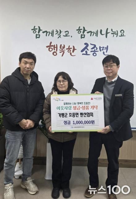 뉴스100 김동초 기자 | 가평군 조종면 펜션협회는 지난 24일 조종면 행정복지센터를 방문해 이웃돕기 성금 100만원을 기탁하며 온기를 더했다.
