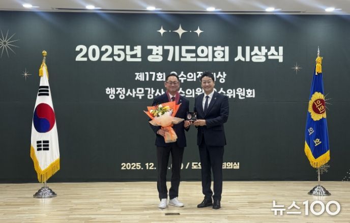 뉴스100 김동초 기자 | 경기도의회 보건복지위원회 소속 김완규 의원(국민의힘, 고양12)이 12월 26일 2025년 행정사무감사 우수의원’으로 선정돼 금일 시상을 받았다. 김완규 의원은 올해 행정사무감사에서 보건·복지 분야 전반을 대상으로 근거 없는 보고와 보여주기식 행정을 바로잡고, 실질적인 제도 개선을 이끌어냈다는 평가를 받았다.