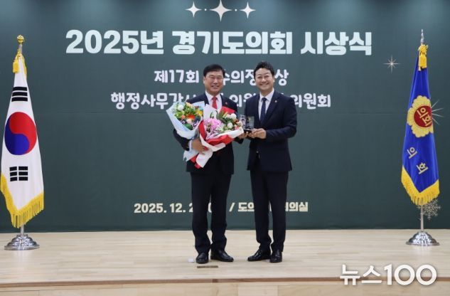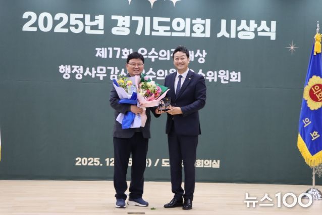 뉴스100 김동초 기자 | 경기도의회 교육기획위원회 이택수 의원(국민의힘, 고양8)과 성기황 의원(더불어민주당, 군포2)이 26일 열린 2025년 경기도의회 시상식에서 ‘2025년 행정사무감사 우수위원’으로 선정됐다.