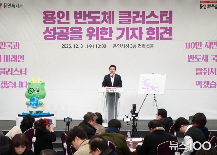 뉴스100 김동초 기자 | 이상일 용인특례시장은 31일 시청 컨벤션홀에서 열린 긴급 기자회견에서 반도체 메가 클러스터 조성을 방해하려는 일부 지역, 일부 여권의 정치인과 일부 행정부 인사의 움직임과 관련해 대통령이나 국무총리가 정부 차원의 공식적인 입장 발표를 통해 논란과 혼란을 종식시켜 줄 것을 요구했다.