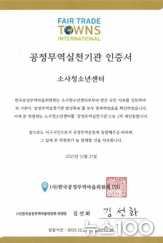 뉴스100 김동초 기자 | 부천여성청소년재단이 운영하는 소사청소년센터는 지난달 27일 사단법인 한국공정무역마을위원회로부터 ‘공정무역 실천기관’ 2차 재인증을 획득했다.
