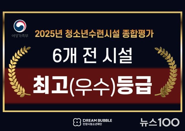 뉴스100 김동초 기자 | 안양시청소년재단은 성평등가족부와 한국청소년정책연구원이 실시한 ‘2025년도 청소년수련시설 종합평가’에서 소속 6개 청소년수련시설이 전국 최상위 성과를 거두며 운영 역량을 공식적으로 인정받았다.