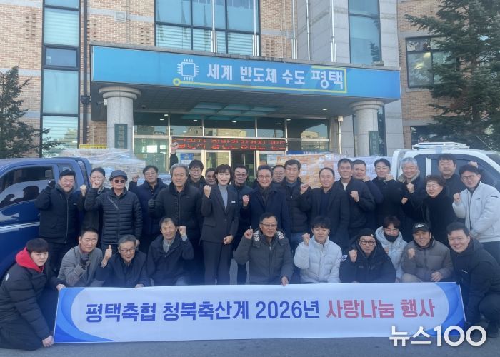 뉴스100 김동초 기자 | 평택시 청북지역 축산인들로 구성된 평택축협 청북축산계는 2026년 새해를 맞아 지난 1월 6일 청북읍 행정복지센터를 방문해 사랑나눔 행사를 진행했다.