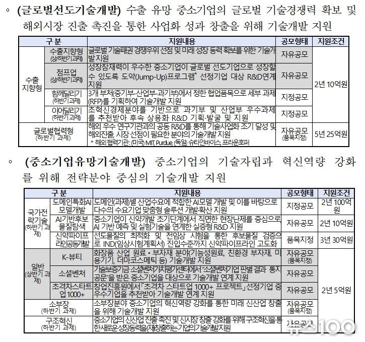 뉴스100 김동초 기자 | 중소벤처기업부는 글로벌 기술 패권 경쟁 심화에 대응하고 중소기업의 기술혁신 역량을 강화하기 위해 1월 9일부터 ‘2026년 중소기업기술혁신개발사업’ 상반기 참여기업을 모집한다고 밝혔다.