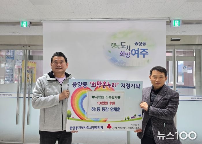 뉴스100 김동초 기자 | 안재훈 하1통장은 새해를 맞아 지난 12일 중앙동행정복지센터에 성금 100만원을 기탁하며 변함없는 이웃사랑을 실천했다.