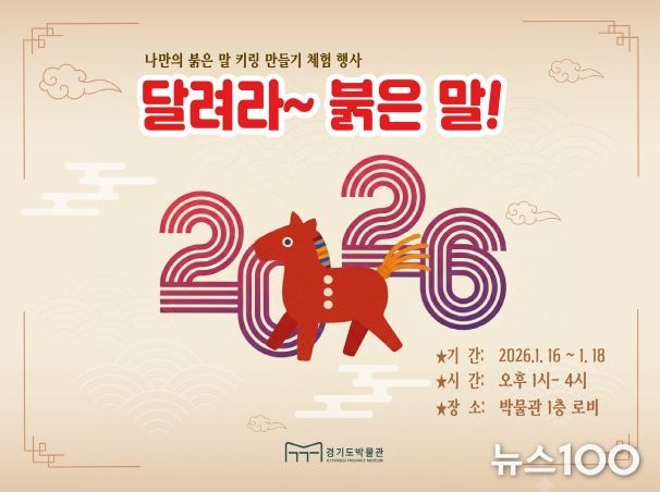 뉴스100 기자 | 경기문화재단 경기도박물관(관장직무대행 박본수)은 병오년 새해를 맞아 관람객을 위한 체험형 교육행사 〈달려라~ 붉은 말!〉을 1월 16일부터 18일까지 3일간 박물관 로비에서 운영한다.