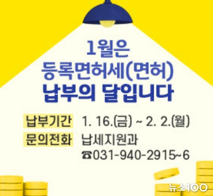 뉴스100 김동초 기자 | 파주시는 2026년 정기분 등록면허세(면허)에 대해 지난해에 비해 25백만 원 감소한 72,913건, 1,175백만 원을 부과했다.