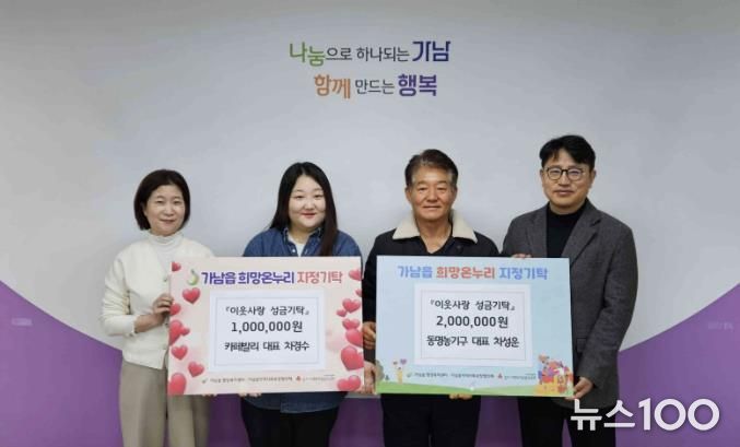 뉴스100 김동초 기자 | 여주시 가남읍 행정복지센터은 지난 15일, 관내 사업체인 동명농기구와 카페 발리에서 지역 내 취약계층을 위한 이웃돕기 성금을 기탁했다고 밝혔다.