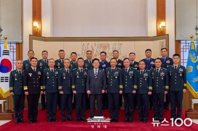 뉴스100 김동초 기자 | 이재명 대통령은 오늘 오후 중장 진급 및 보직 신고, 그리고 수치 수여식을 개최했다.