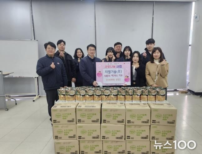 뉴스100 김동초 기자 | 의왕시 청계동에 소재한 지엘기술(주)는 1월 15일 지역 내 취약계층을 지원하기 위한 영양식으로 설렁탕 270팩(100만원 상당)을 마련해 청계동 주민센터에 기탁했다.