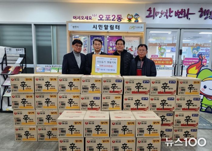 뉴스100 김동초 기자 | 광주시 매산1통 기업인협의회는 20일 오포2동 행정복지센터를 방문해 100만 원 상당의 라면을 기탁하며 지역사회 나눔을 실천했다.