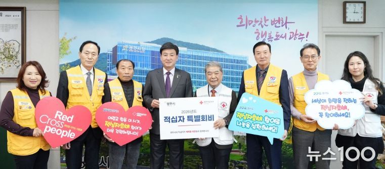 뉴스100 김동초 기자 | 광주시는 20일 시장실에서 ‘2026년도 적십자 특별회비 전달식’을 열고 대한적십자사 경기도지사에 특별회비 100만 원을 전달했다.