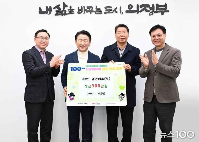 뉴스100 김동초 기자 | 의정부시는 1월 22일 엠엔테크(주)가 관내 저소득층을 위해 성금 300만 원을 기부했다고 밝혔다.