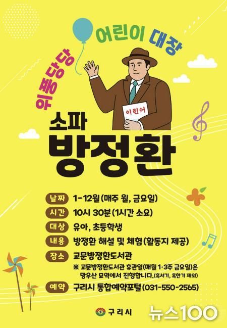 뉴스100 김동초 기자 | 구리시는 지난 1월부터 운영 중인 유아와 초등학생 대상 특별 역사교육 프로그램 ‘위풍당당 어린이 대장, 방정환’ 해설이 큰 호응을 얻고 있다고 밝혔다.