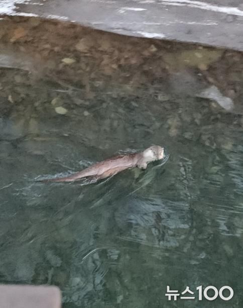 뉴스100 김동초 기자 | 군포시의 대표 휴식처인 반월호수에 멸종위기 야생생물 1급이자 천연기념물인 ‘수달’이 모습을 드러냈다.