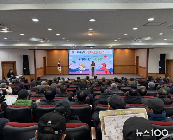 뉴스100 김동초 기자 | 안성시농업기술센터는 지난 1월 28일, ‘2026년 새해농업인 실용교육’을 성황리에 마무리했다고 밝혔다. 이번 교육은 안성시가 새해를 맞아 추진한 농업인 실용교육 중 가장 높은 참여율을 기록하며, 지역 농업인의 큰 호응을 얻었다.