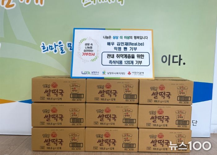 뉴스100 김동초 기자 | 남양주시는 지난달 30일, 배우 김민재(Real.be)의 팬 A씨가 설 명절을 맞아 지역 내 도움이 필요한 이웃을 위해 즉석식품 120개를 기부했다고 3일 밝혔다.