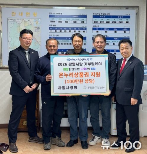 뉴스100 김동초 기자 | 광명시 하안1동 하일사랑회는 지난 2일 설 명절을 맞아 관내 저소득 20가구에 온누리상품권 100만 원(가구당 5만 원)을 전달했다.
