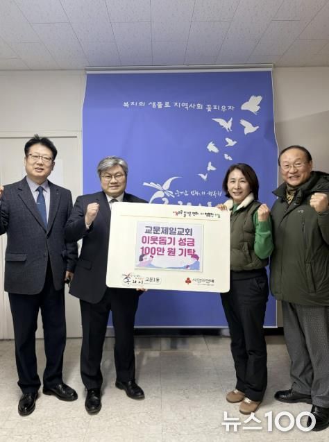 뉴스100 김동초 기자 | 구리시 교문1동 행정복지센터는 설 명절을 맞아 지난 2월 3일, 교문제일교회로부터 이웃돕기 성금 100만 원을 기탁받았다.